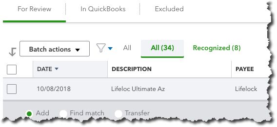 You will have to go through some security procedures, and then QuickBooks Online will download 90 days of transactions (you can shorten this if you’d like). You’ll also be asked which QBO account should receive the transactions. After a few minutes, the register for that account will appear, displaying the transactions you just downloaded.